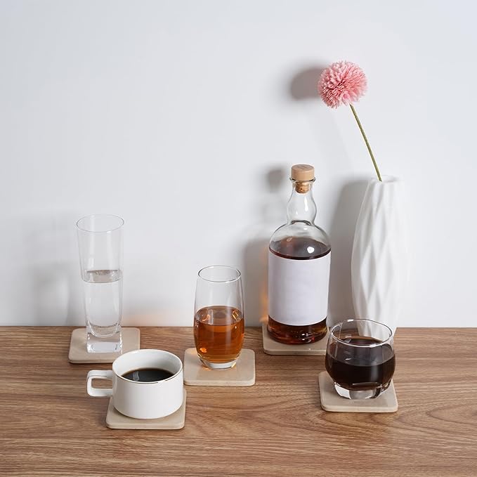 - Fits All Drinkware: Generously sized for wine glasses, mugs, and tumblers. The smooth surface catches condensation, keeping your tabletops scratch-free and pristine