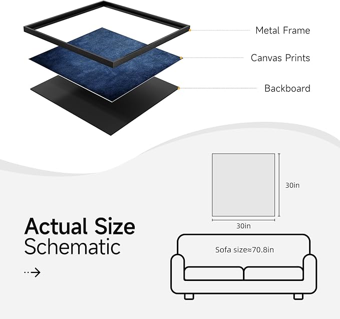 - [Framed Wall Art]: This navy blue modern abstract large framed wall art measures 30x30 inches. Each painting with a solid, rust-resistant, simple and stylish black frame that blends in perfectly with a variety of decor styles.