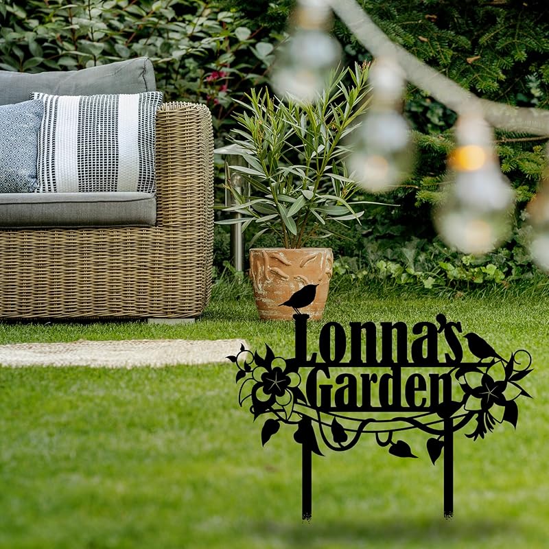 Personalized Flower and Bird Metal Garden Stake, Bird Garden Sign, Custom Flower Yard Decor, Mom's Garden Gift, Gardener Family Name Sign, Patio Home Gift, Yard Art, Housewarming Gift