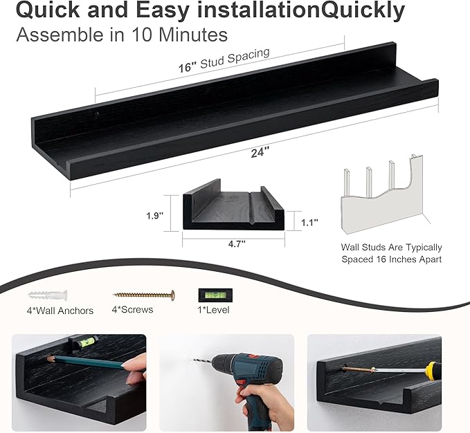 - Easy Installation: Each shelf comes with all necessary hardware and clear instructions for hassle-free mounting. The floating design creates a sleek, seamless look, adding sophistication to your space.