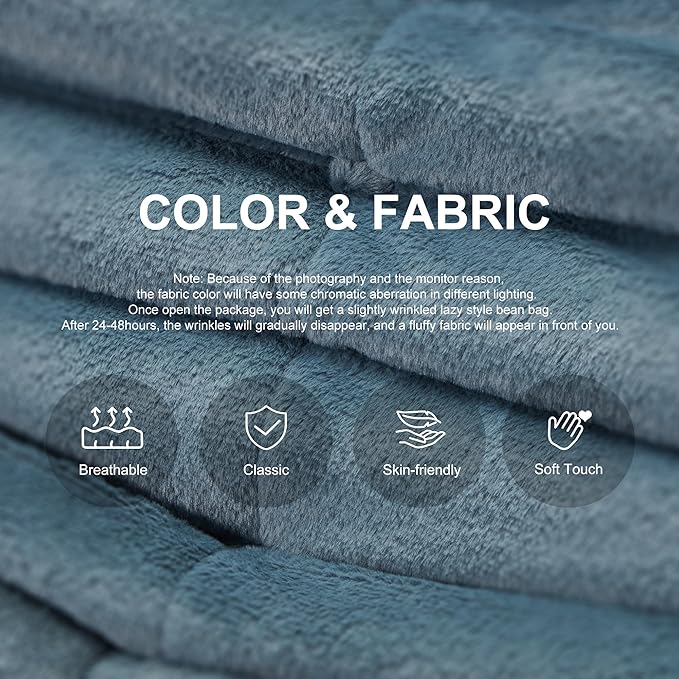 Bean Bag Chairs for Adults Giant Bean Bag Chair Memory Foam BeanBag Chair Big Bean Bag Sofa with Filler Faux Fur Fireside Beanbags Lazy Sofa for Living Room Bedroom Dorm Office (Bluegrey Plush)