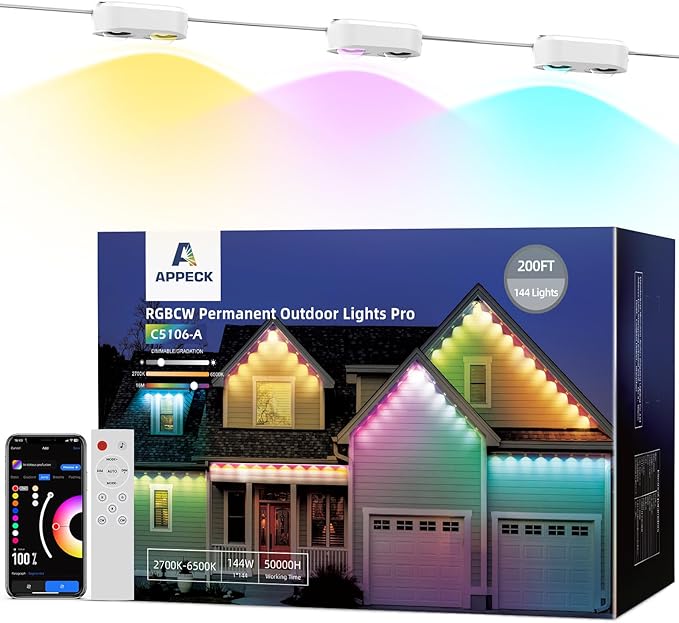 - Outdoor Durability: The outdoor lights, control box and 144W adapter are IP67 waterproof to withstand extreme weather. Thanks to UV-resistant materials, the permanent lights for house can withstand long time exposure without fading. Operates well from -4°F to 140°F, up to 50,000 hours working life, suitable for year-round lighting