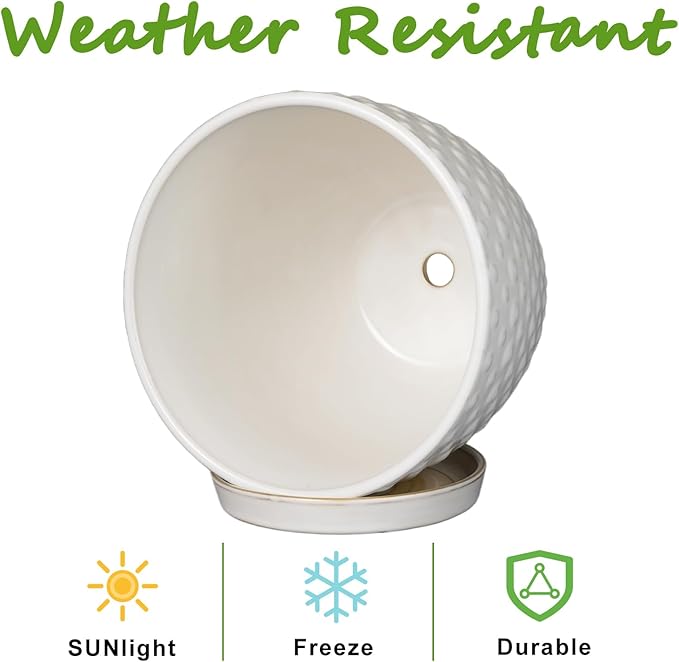 - Durable Ceramic: This 10 inch plant pot has a high-temperature firing for excellent air permeability, as well as frost and can be used for long time, making it nice for both outdoor and indoor use