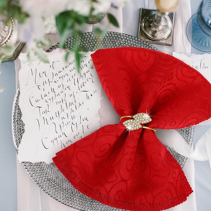 - You will get: set of 150 pieces metal napkin rings, design by shiny rhinestone double leaves, elegant plated add more gloss and sparkly, which makes for an elegant addition to the table setting
