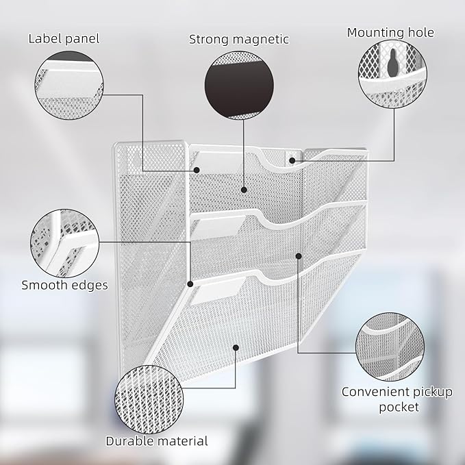 - 【Durable Metal Construction】Crafted from high-quality metal with an attractive mesh wire design, this magnetic hanging file organizer features a durable powder coat finish that is resistant to oxidation and rust. Please exercise caution when removing the product from an iron surface due to its strong magnetic force.