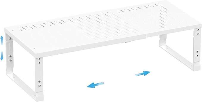 - ⭐【Expandable,Stackable】The shelves can easily expand and contract according to your storage needs, whether it is kitchen clutter or office supplies.You can combine multiple shelves together to form a large storage system, or separate them into several separate smaller units(Measure:10.24"D x 16.54"W~27.17"W x 8.31"H/7.68"H/7.05"H/6.42"H)