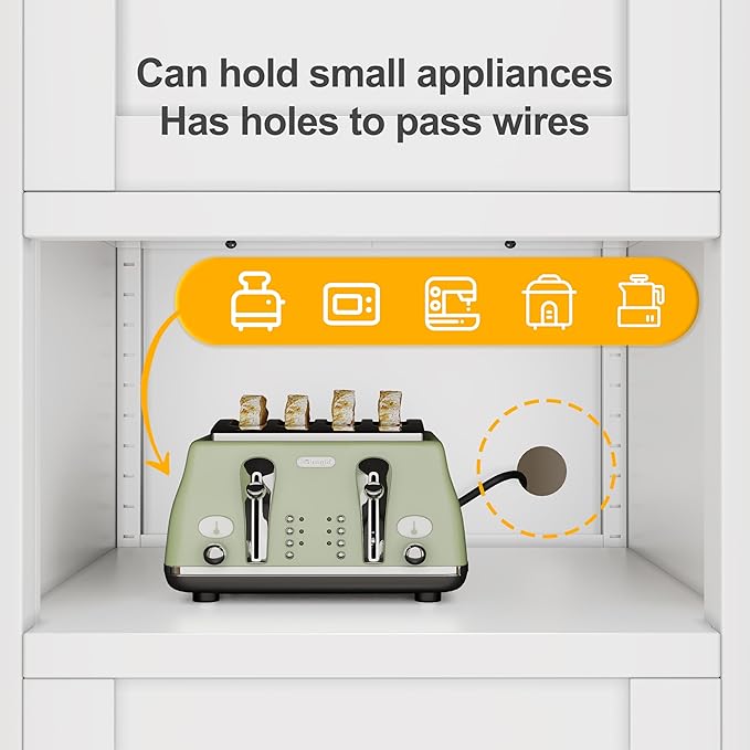 - 🛒【High Quality Materials】: The Kitchen storage cabinet is made of high-quality cold-rolled steel. Pantry cabinet adopts a high-quality electrostatic powder layer, which is easy to clean, scratch resistant, and sturdy and durable.