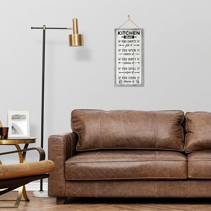 Hanging Kitchen Rules Wood Decor Sign, Rustic Kitchen Wooden Signs, Printed Wood Wall Art Sign, Kitchen Door Rules Rustic Sign, Hanging Wood Sign Kitchen Decor, Funny Farmhouse Kitchen Wall Décor J1