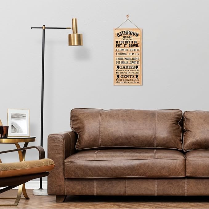 Rustic Western Bathroom Decor - Funny Wall Signs, Farmhouse Country Rules Wall Decor H1