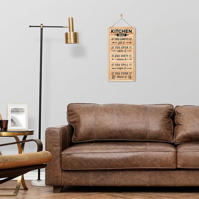 Hanging Kitchen Rules Wooden Sign, Rustic Kitchen Decor, Printed Wall Art, Funny Farmhouse Wall Decor
