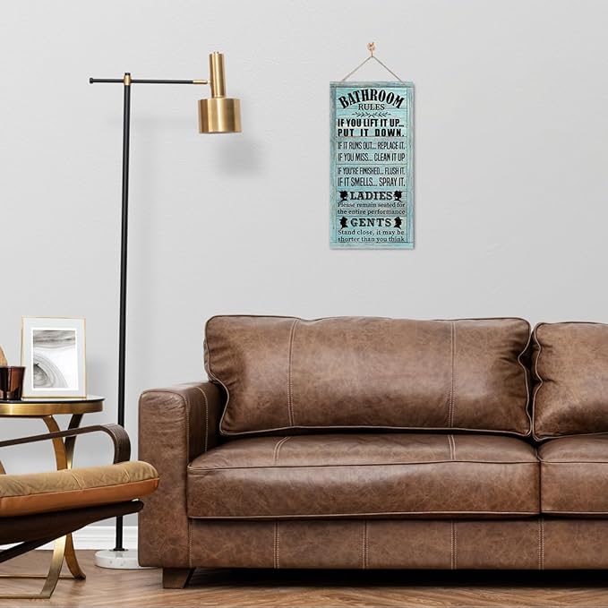 Rustic Western Bathroom Decor - Funny Wall Signs, Farmhouse Country Rules Wall Decor C1