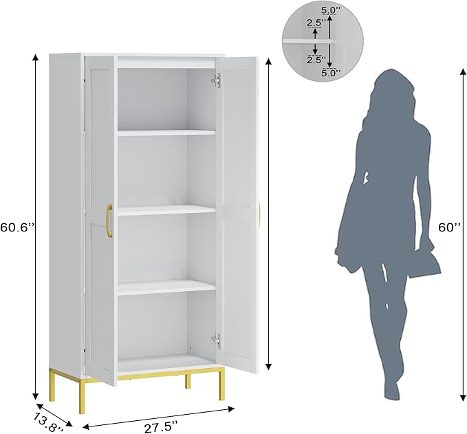 - Dimensions:14''D*27''W*60''H,The storage cabinet adopts a two door design to prevent items from falling off