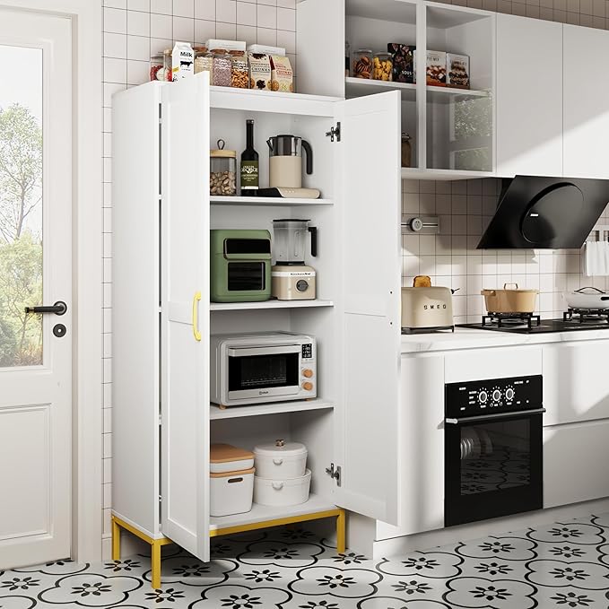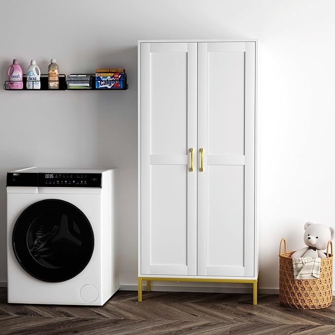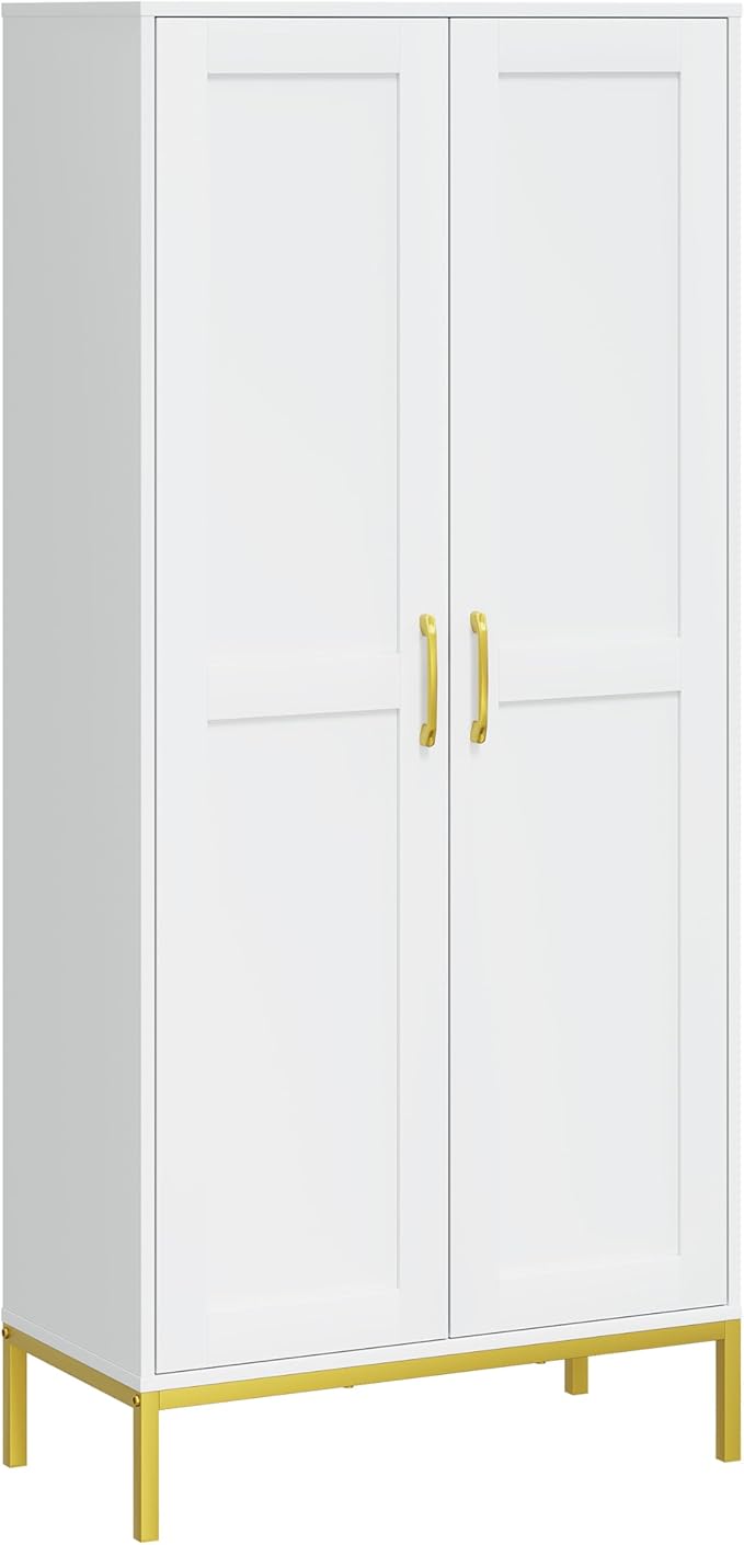 Tall Storage Cabinet, Kitchen Pantry Cabinet with 2 Doors & Adjustable Shelves for Laundry Room, Living Room, Entryway,Bathroom,White
