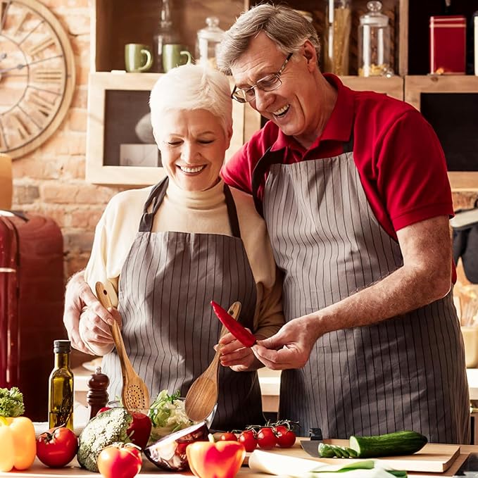 - Multi-functional 6-piece Kitchenware Set--Our wooden kitchenware set comprises 6 essential cookware items, including a spatula, slotted spatula, skimmer, turner, ladle, and salad spoon. These wooden kitchen utensils cater to the fundamental requirements of cooking, whether it involves frying, stir-frying or making soup. They are designed to meet your culinary needs with efficiency and versatility