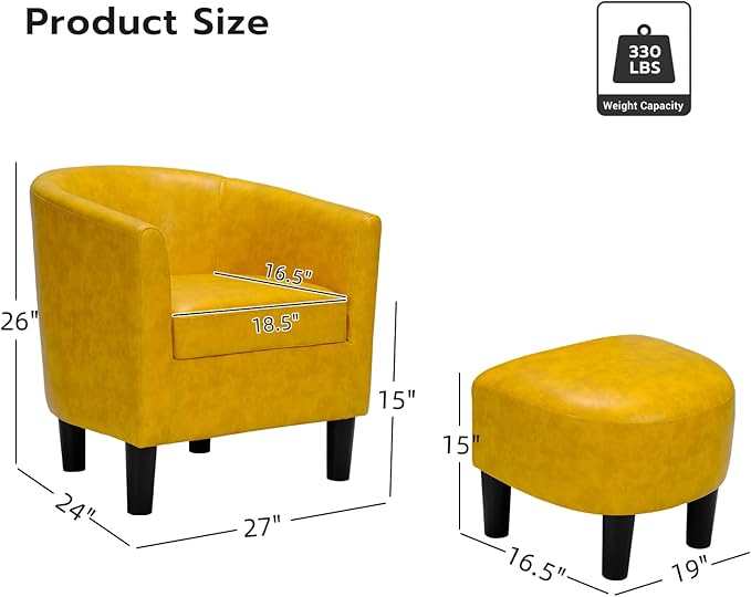 - 【Perfect Size】- Overall accent chair dimension: 27"W*24"D*26"H, Ottoman:19"W*16.5"D*15"H. Maximum weight capacity: 330 lbs. It's good furniture for your living room, bedroom, den, recreation area, guestroom, small spaces apartment, office or studio. Tight spaces but sturdy enough for a larger individual, perfect chair for a small space...