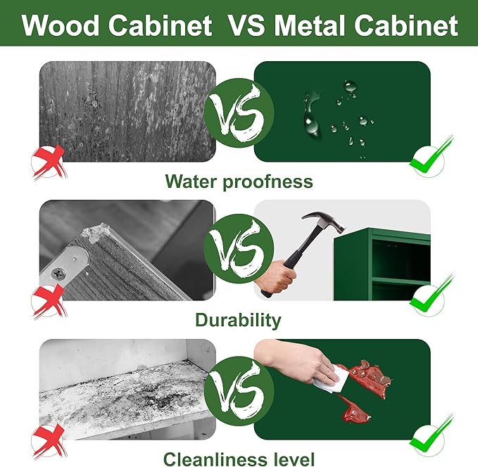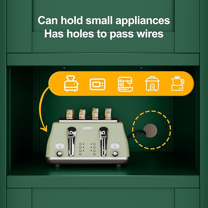 - ๐ใSafe and Sturdyใ: The storage cabinet is made of high-quality cold-rolled steel. Pantry cabinet adopts a high-quality electrostatic powder layer, which is easy to clean, scratch resistant and sturdy and durable.The back panel has screws that can be fixed to the wall to prevent the cabinet from tipping over.