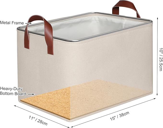 - 【Sturdy Construction】Our storage baskets for shelves are reinforced with upper metal frame and fiberboard bottom to keep basket shape and upright. With the 2 leather handles securely sewn to the sides of the fabric bins, provides a comfortable grip while ensuring that you can easily carry items without tearing the handles.