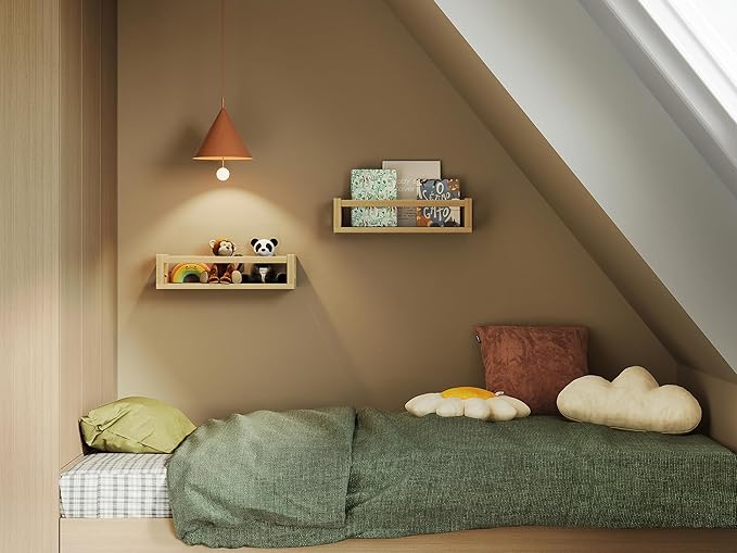 Upgraded Thick Floating Shelves - Multi-Use Wall-Mounted Bookshelves for Kids and Nursery, Ideal for Books, Toys, Spice Rack, Decor - NaturalWood