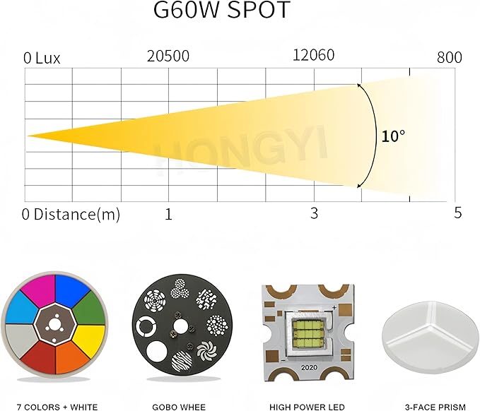 - 【The Moving Head Lights High brightness】 The lyre spot light has high brightness, low energy consumption, and can be used for various occasions.