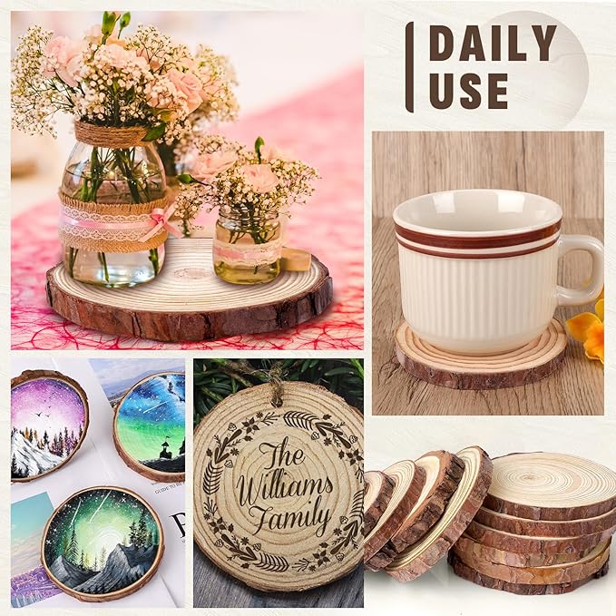 - Wood Slices for Crafts: The Package includes 10pcs unfinished wood slices for centerpieces 3.5-4inch.
