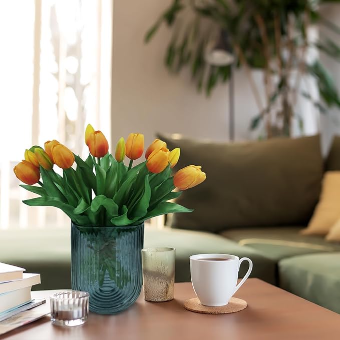 - [Real Touch]: Our latex tulips closely mimic the texture of real flowers, and the buds resemble the natural growth state of the plant. With bright, shiny colors, real touch flowers provide a unique sensory experience, uplifting your mood when placed in your home.