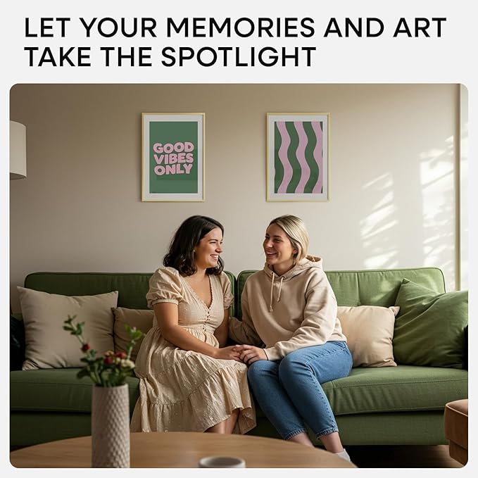 - SUBTLE GLOW. SIMPLE FORM. This frame’s polished champagne gold hue adds just enough shine to catch the eye. Clean lines and a minimalist build keep the look modern and uncluttered.