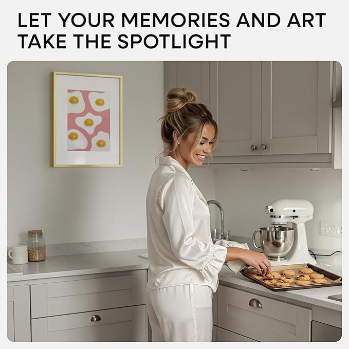- SUBTLE GLOW. SIMPLE FORM. This frame’s polished champagne gold hue adds just enough shine to catch the eye. Clean lines and a minimalist build keep the look modern and uncluttered.