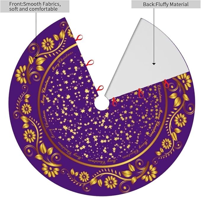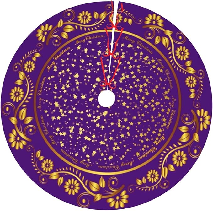 48" Large Christmas Tree Skirt, Elegant Modern Purple Gold Pattern Tree Mat Base Cover for Xmas Festive Holiday Party Decoration Ornaments