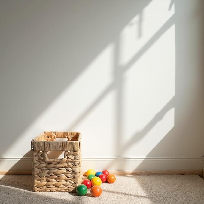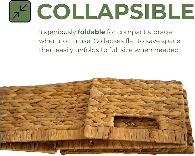 - [Natural Materials & Versatile Use] This set of two water hyacinth storage baskets is perfect for organization and storage for your bathroom, bedroom, living room, kitchen, or laundry room. Safe for kids and great for parents looking for toy storage baskets or entryway organizers. Handwoven by skilled Vietnamese artisans using natural water hyacinth, these wicker storage are chemical-free and safe for children, ensuring a tidy and stylish living space.