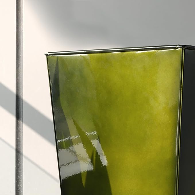 KOL 18''H. Bright Glazed Planter with Drainage Hole, Set of 2, Galvanized Steel Planter Pots for Indoor & Outdoor Use, Decorative Flower Plant Pots for Front Porch, Patio, Deck - Green