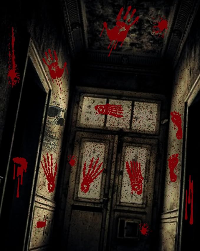 - Spooky Realistic Patterns :Halloween Decorations of Halloween arm stickers will definitely make your Halloween party full of haunted house atmosphere. They are a great choice for Halloween decorations and walking dead parties.Includes 14 window stickers with vivid bloody handprints, footprints, and bloodstains.