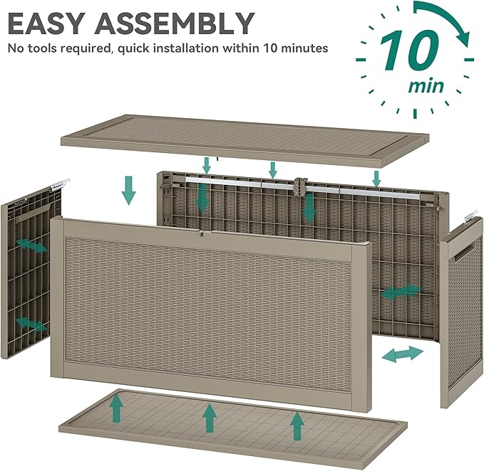 - Simplified Outdoor Organization: Tired of battling clutter? Our XXL outdoor deck box is designed to ease your worries; This 260 gallon deck box easily accommodates pool and patio items; With a detailed instruction manual included, you can assemble your practical outdoor storage box in just 10-15 minutes
