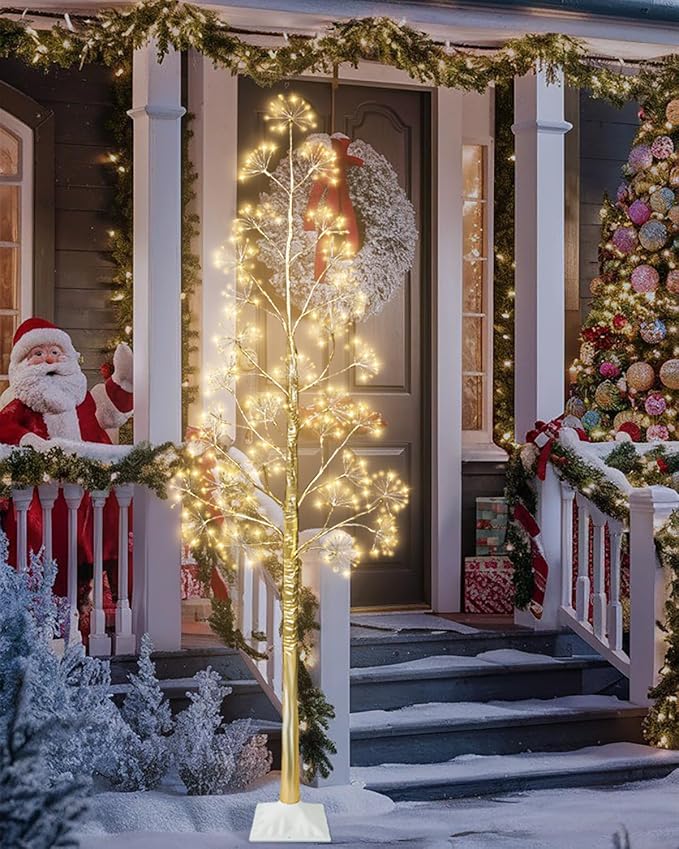 - Lighted Christmas Tree: Add a festive touch with this 6ft Christmas birch tree, which featuring 660 warm white starburst LED lights. Perfect for living rooms, porches and entryways, it creates a magical holiday ambiance in any space