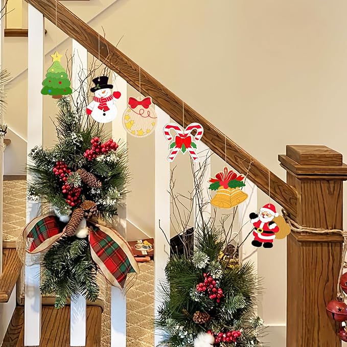- Christmas Ornaments Includes:8 different shapes of blank wooden circles for free painting, each shape contains 10 pieces, (Reindeer Santa Claus Christmas Tree Ball Snowman Snowflake Angel Bell Wooden Shapes blank wooden circles) 80 pieces of cotton, and linen braided rope