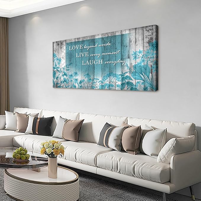 Cao Gen Decor Art S07050 Wall Art Motivational Quotes Canvas Prints 1 Panels Teal Flowers Abstract Pictures Paintings Stretched and Framed for Living Room Bedroom Kicthen Office Artwork