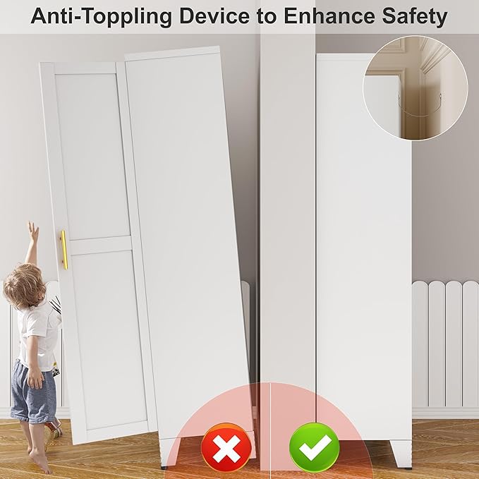 - Secure Storage: The kitchen storage cabinet measures 11.81"D x 23.62"W x 47.25"H. Includes 4 adjustable legs for added stability and weight-bearing capacity. There are anti-tipping devices and it can be equipped with a wall anchor kit and can be more securely fixed to the wall. Prevent tall freestanding cabinets from tipping, protect your and your family's safety