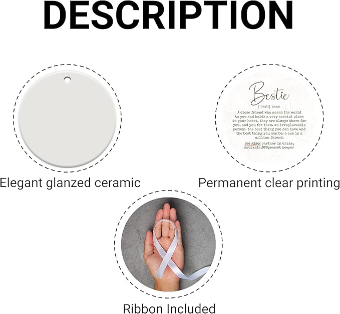 Friendship Gifts for Women, Best Friend, Funny, Work Besties, Sister, Friend Ornaments for Women, Ceramic Christmas Ornaments (Besties 2)