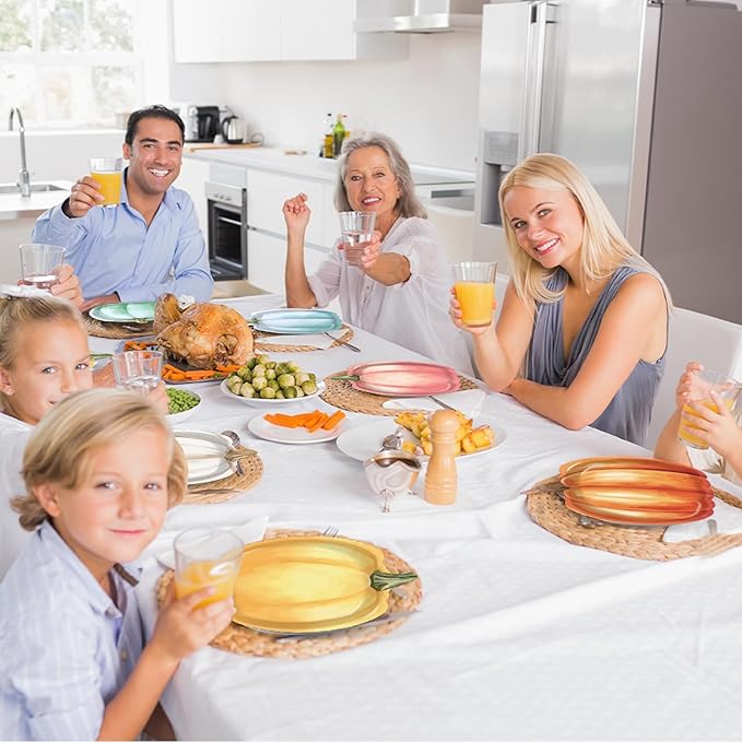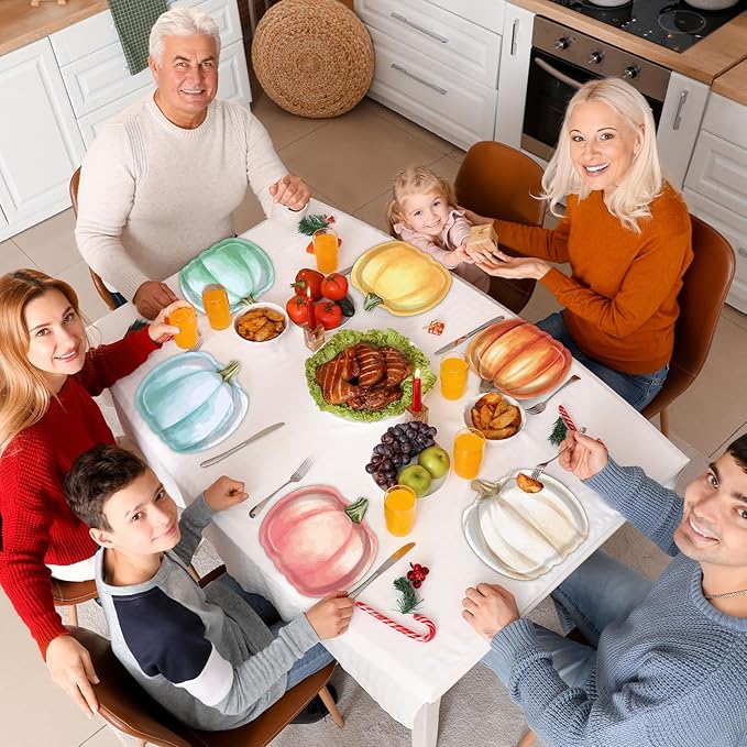 - Unique design: Our autumn party plates showcase a charming pumpkin shape, ideal for adding a seasonal touch to your table setting. These delightful Thanksgiving plates for party feature vibrant colors: blue, pink, orange, orange brown, white, green, making them a standout addition to your Thanksgiving dinnerware or Halloween party favors.