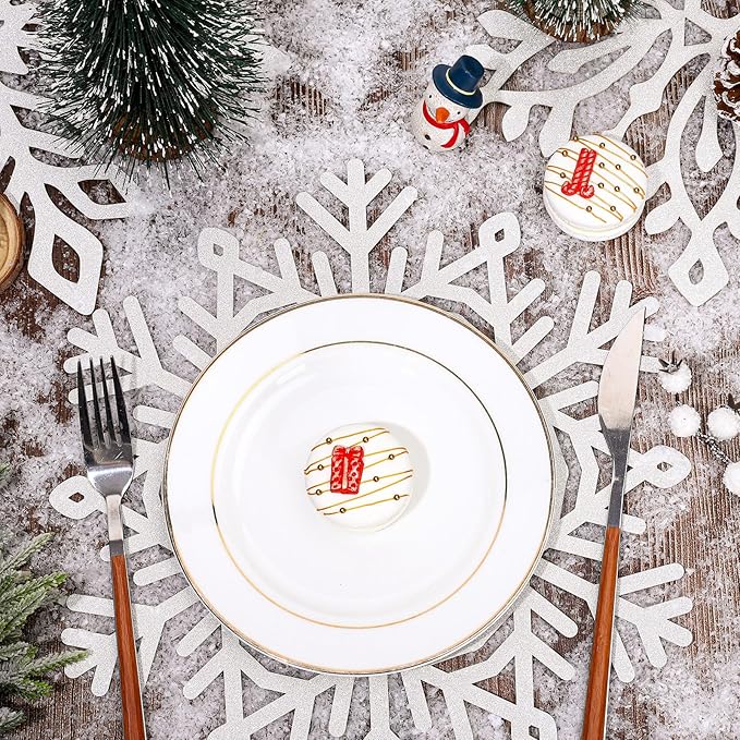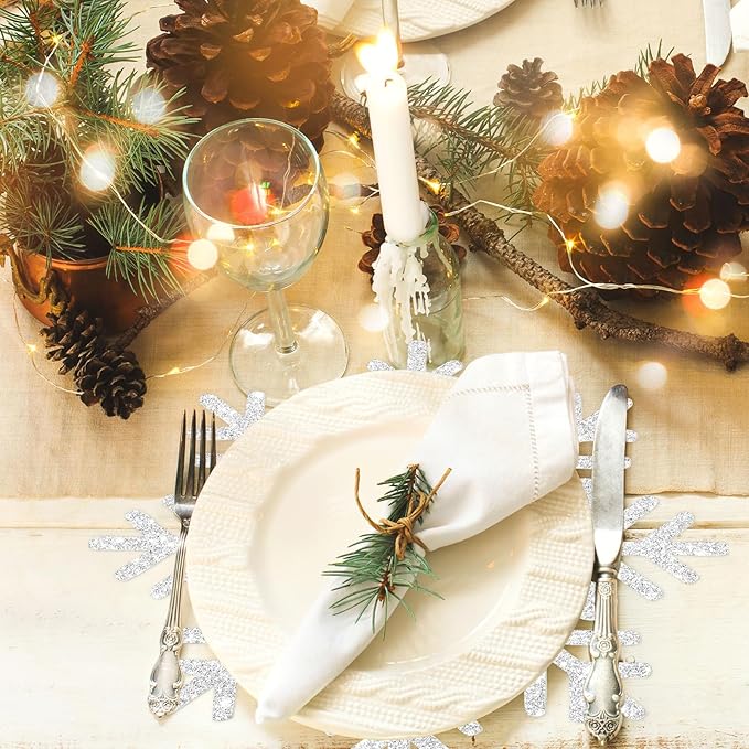 60Pcs Christmas Snowflake Paper Placemat Silver Glitter Snowflake Disposable Place Mat Winter Dining Table Mats for Xmas Birthday Party Kitchen