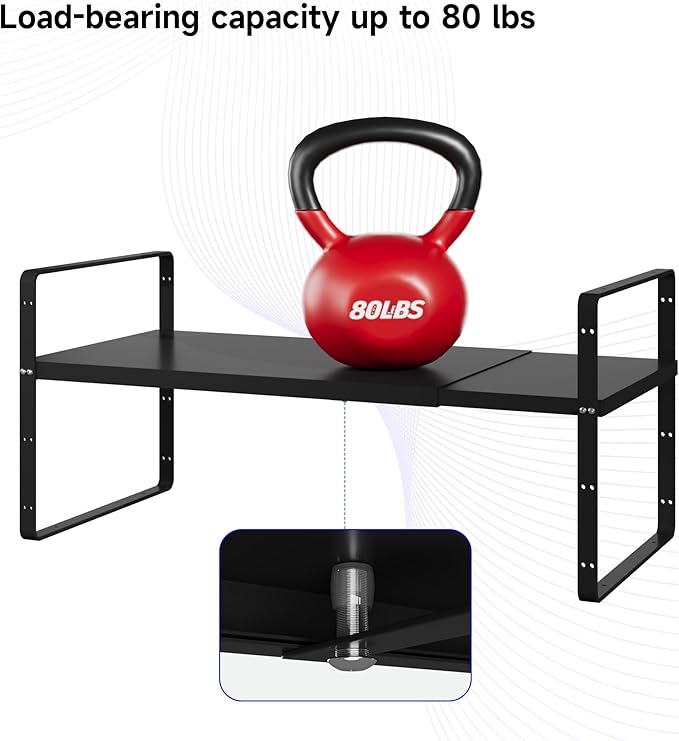 - Flexible Storage Solution: This cabinet shelf is both expandable and stackable, adjusting from 16.7 to 27.2 inches in width. Stack multiple shelves to maximize your storage space