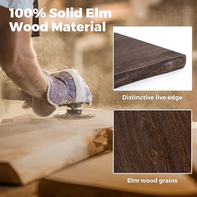 - LAST AND STURDY: Crafted from thick, high-quality solid elm wood, solid elm wood will stand the test of time; shelf is 100% real live edge wood, no veneers; our floating wall shelf is capable of holding up to 100 lbs. The heavy duty hidden metal brackets and wall anchor hardware ensure stability and prevent any sagging issues