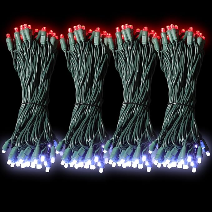 600LED (12pk of 50L) String Lights,LED Christmas Lights, 6" SPACING,Green Wire,Red and White