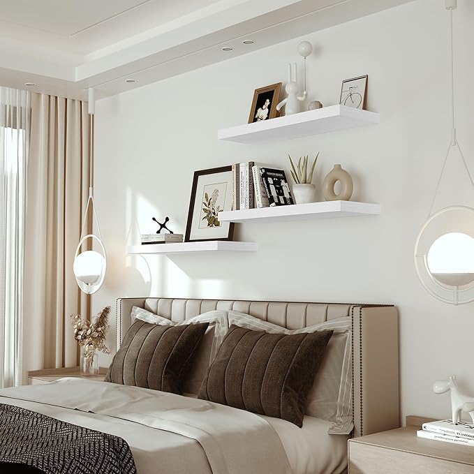 - Versatile & Functional - Our Decorative shelf for wall Adds character to any modern, traditional, rustic, or farmhouse decor home & kitchen styles.These shelves for wall decor above a small desk in your guest room, desks, fireplaces, over toilet storage shelf,living room wall decor, corner bookshelf, bathroom decor, office wall decor,or vanities and so on. If you are seeking easy-to-install, stylish floating shelves to add a contemporary touch to your home, these shelves are an excellent choice.
