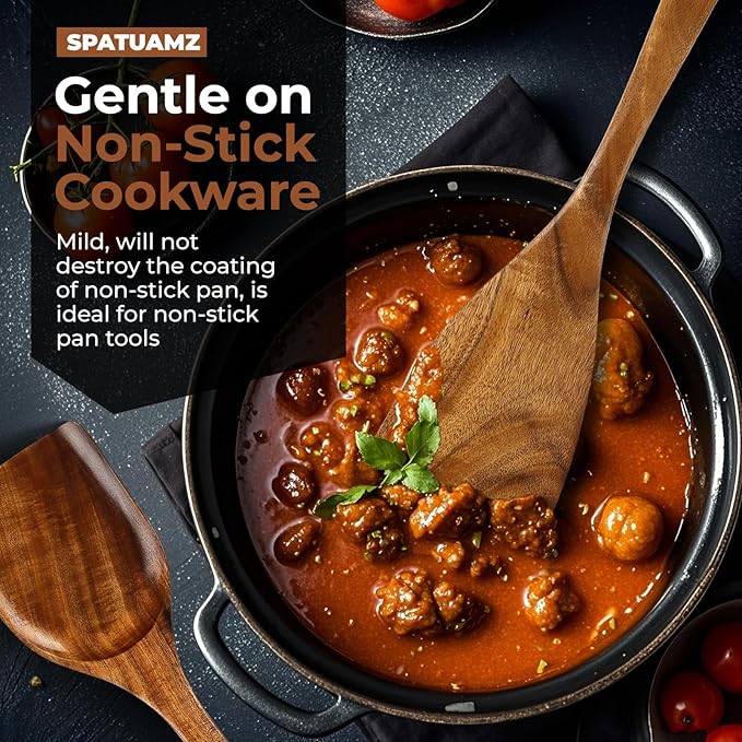 - 【Safe for Nonstick Cookware – Durable & Heat-Resistant】: Our teak wood utensils are perfect for nonstick cookware, preventing scratches or damage to your pans. These utensils are strong, long-lasting, scent-free, and heat-resistant, making them ideal for high-temperature cooking