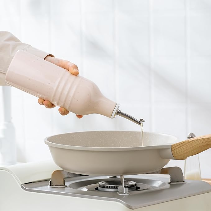- ELEGANT OLIVE OIL DISPENSER BOTTLE - Our 16-ounce ceramic oil dispenser is handmade and batch-fired at extremely high temperatures, forming a smooth glaze and providing a resilient