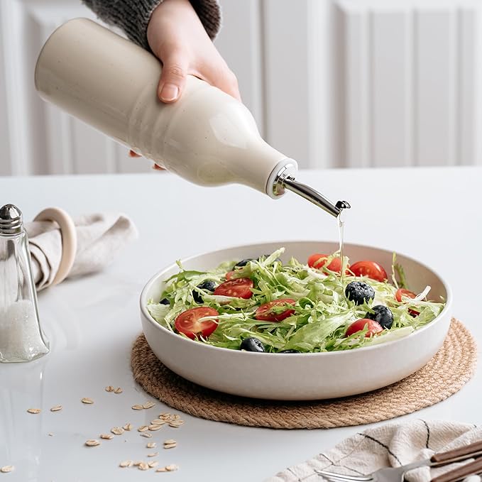 - ELEGANT OLIVE OIL DISPENSER BOTTLE - Our 16-ounce ceramic oil dispenser is handmade and batch-fired at extremely high temperatures, forming a smooth glaze and providing a resilient