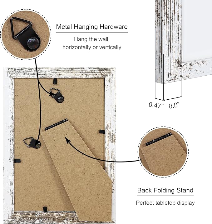 • Multiple Display:4 by 6 photo frames come with hanging hardware, which can be hung horizontally or vertically on the wall, or displayed on the tabletop through the stand