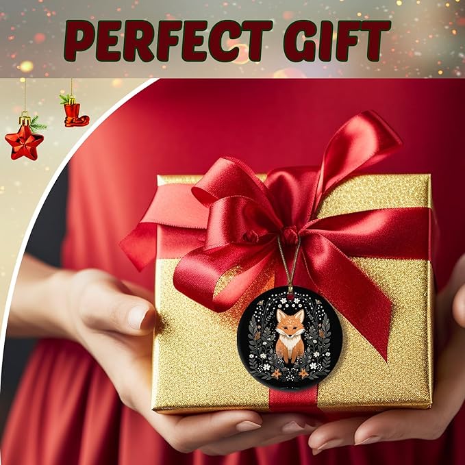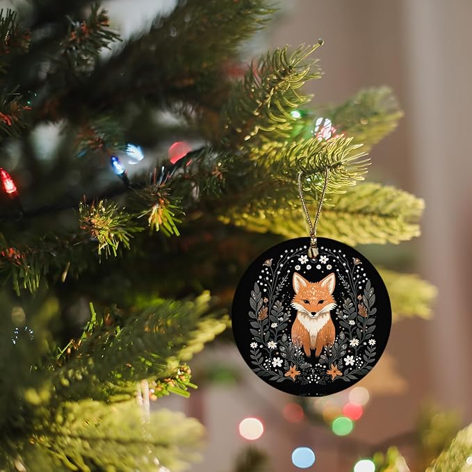 Fox Ornament, Fox Gifts for Women Girls Men,Gifts for Fox Lovers, Cottagecore Botanical Fox Ceramic Ornaments, Fox Decorative Hanging Ornament