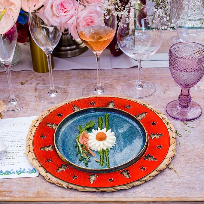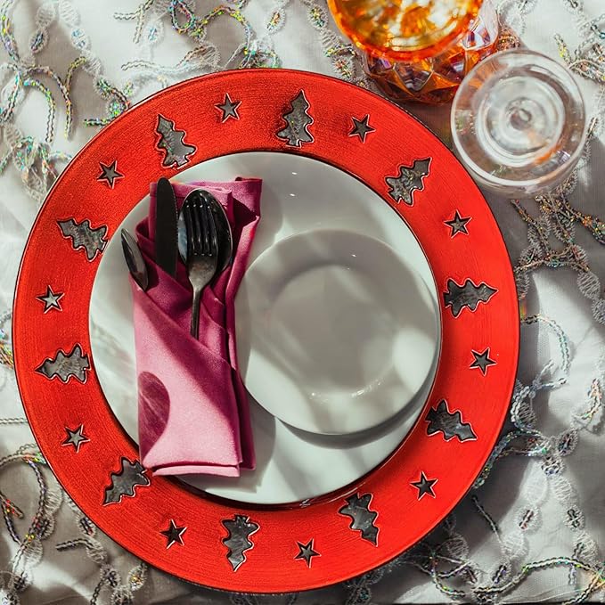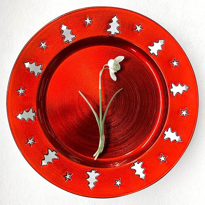 - Elegant Design for Holiday Occasions: Our Christmas charger plates measure 13 inches in diameter and are perfect as a decorative centerpiece for Christmas, New Year's, weddings and parties, instantly elevating the ambiance of your table décor with their vibrant colors and sculpted edges.