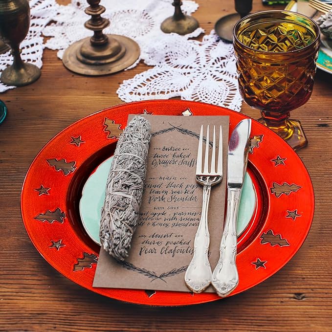- Care Instructions: Please note that these Christmas charger plate sets should be hand washed to maintain their stunning appearance and durability, ensuring that they become a must-have in your holiday decorations for years to come.